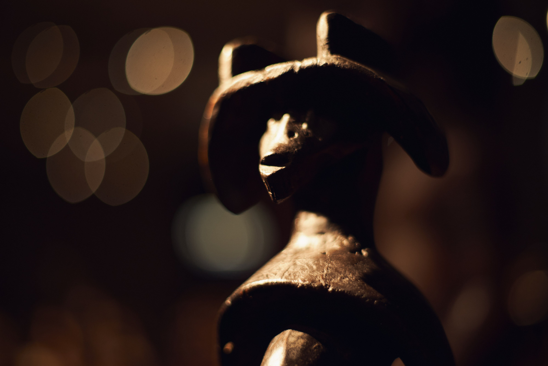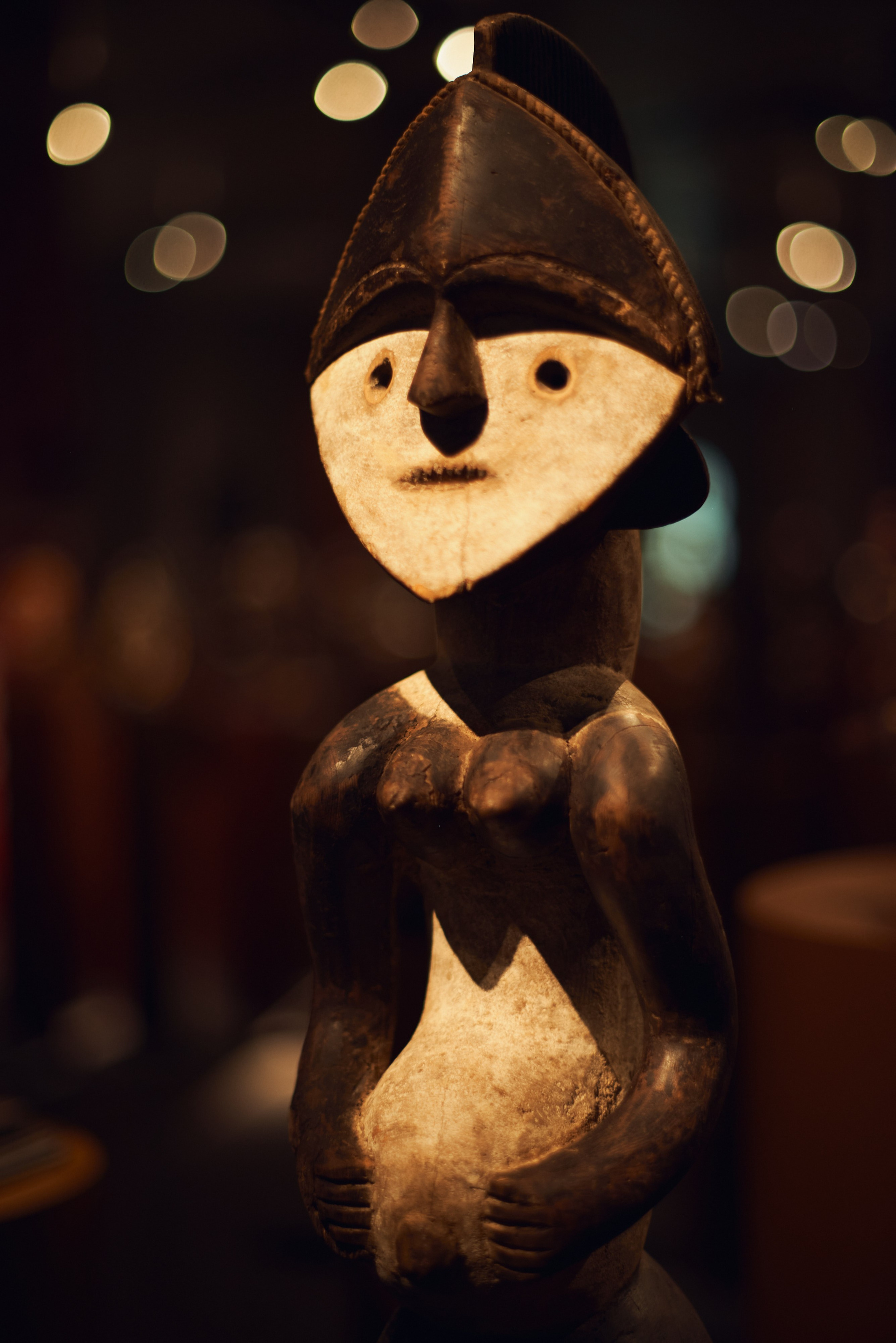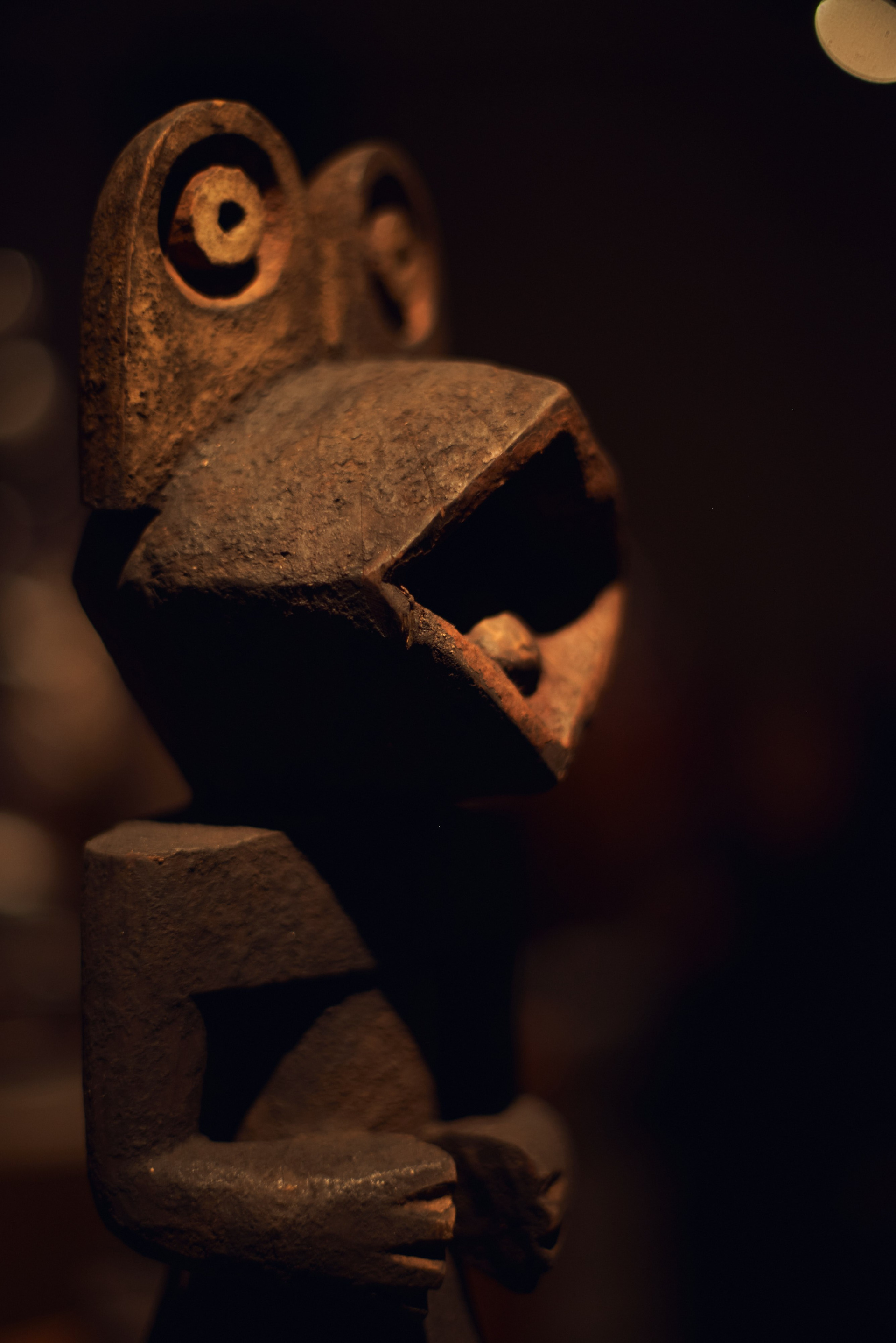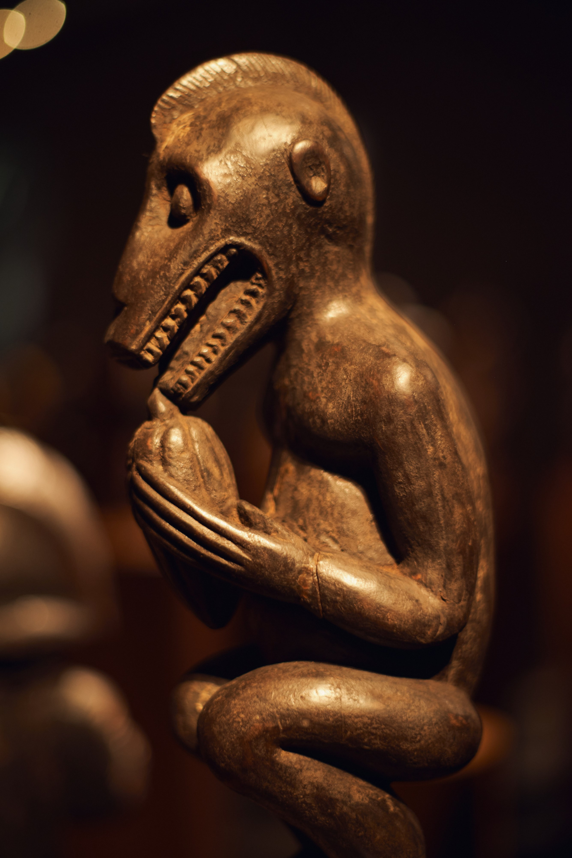 Павел Иосифович Хайс, человек известный в музейных и галерейных кругах, путешественник, коллекционер и страстный игрок в бильярд оставил на лестничной площадке четвертого этажа главный (и самый дорогой) экспонат своей коллекции намерено. Стало быть, к теории случайностей нам никакого резона обращаться нет. Узкие щели-глаза маленького деревянного чудовища обращены были на всякого, кто подымался по лестнице. Плоские и широкие ступни, больше похожие на ласты, крепко упирались в бетон. Кривые ноги, согнутые словно две пружины перед прыжком, сложенные на круглом животике крепкие руки и короткая мощная шея. Все это говорило о том, что малыш — вовсе не детская игрушка, не троюродный племянник Барби или Кена.