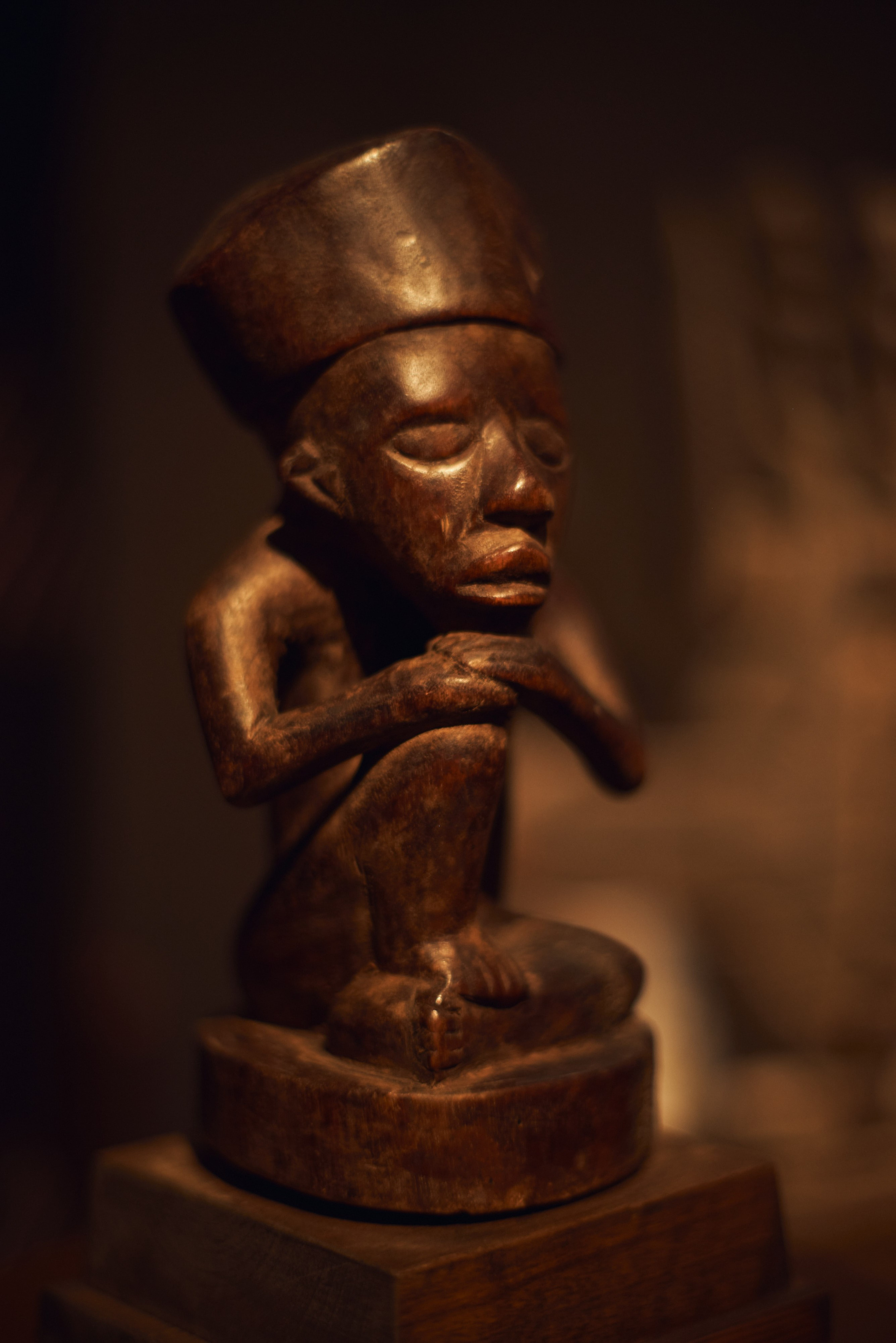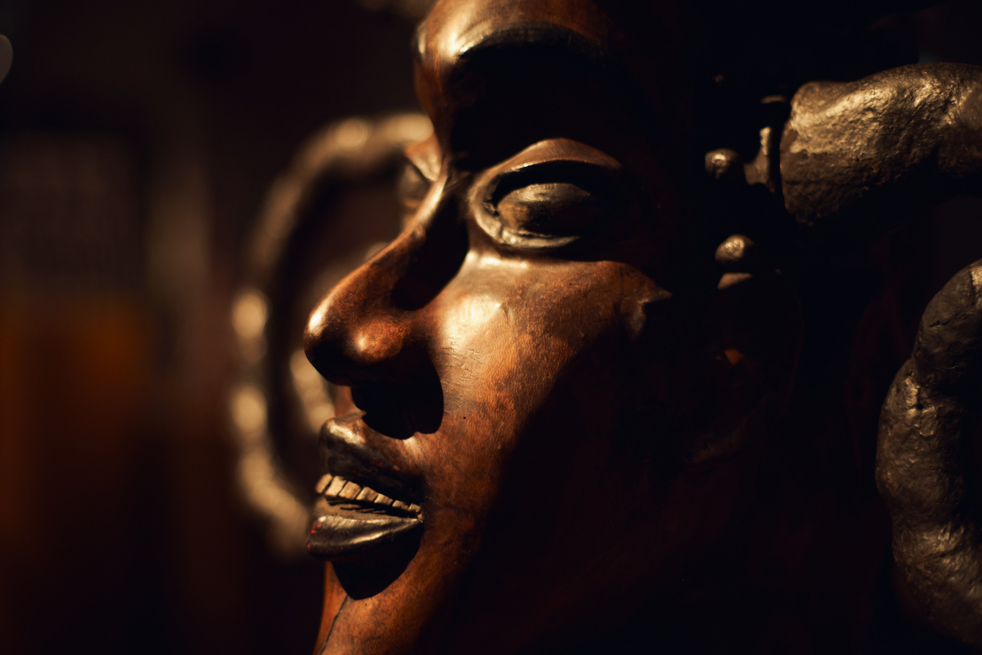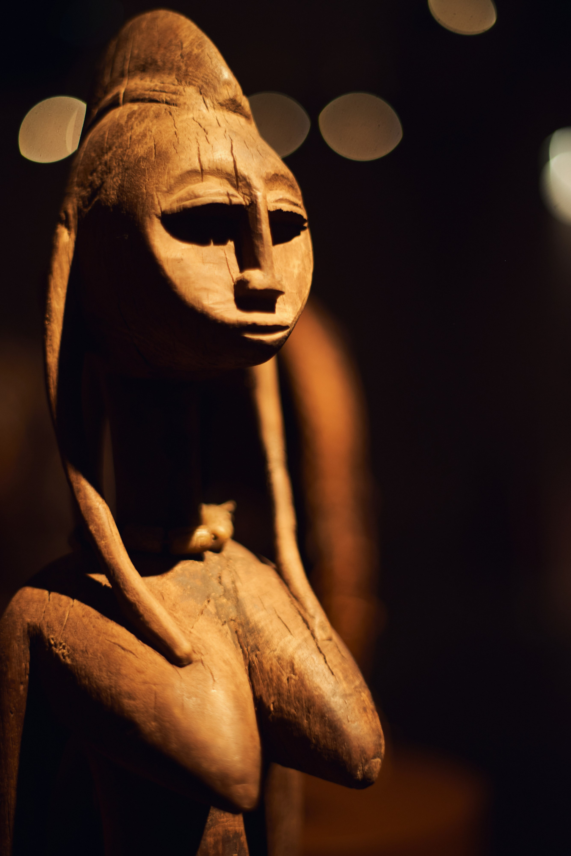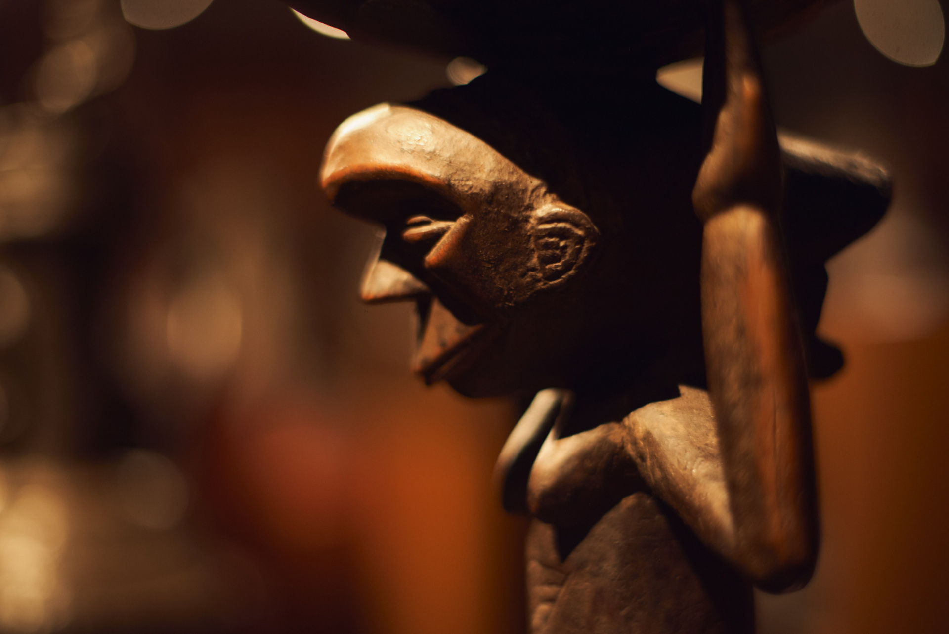 Павел Иосифович Хайс, человек известный в музейных и галерейных кругах, путешественник, коллекционер и страстный игрок в бильярд оставил на лестничной площадке четвертого этажа главный (и самый дорогой) экспонат своей коллекции намерено. Стало быть, к теории случайностей нам никакого резона обращаться нет. Узкие щели-глаза маленького деревянного чудовища обращены были на всякого, кто подымался по лестнице. Плоские и широкие ступни, больше похожие на ласты, крепко упирались в бетон. Кривые ноги, согнутые словно две пружины перед прыжком, сложенные на круглом животике крепкие руки и короткая мощная шея. Все это говорило о том, что малыш — вовсе не детская игрушка, не троюродный племянник Барби или Кена.